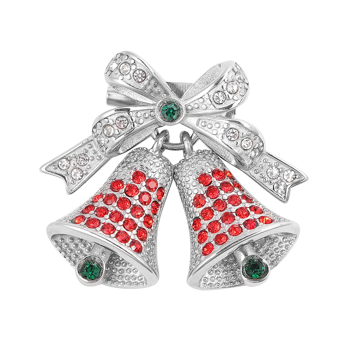 Add Christmas vibes to your attire by adorning this Christmas bell brooch. Meticulously crafted with precisely set colorful Austrian crystals that exude shiny hues. Style this brooch on your hair or clip it on your dress to complete a Christmas look. Crafted in stainless steel, this brooch is redefined cuteness. Make sure that you don't miss out on this vibrant piece.