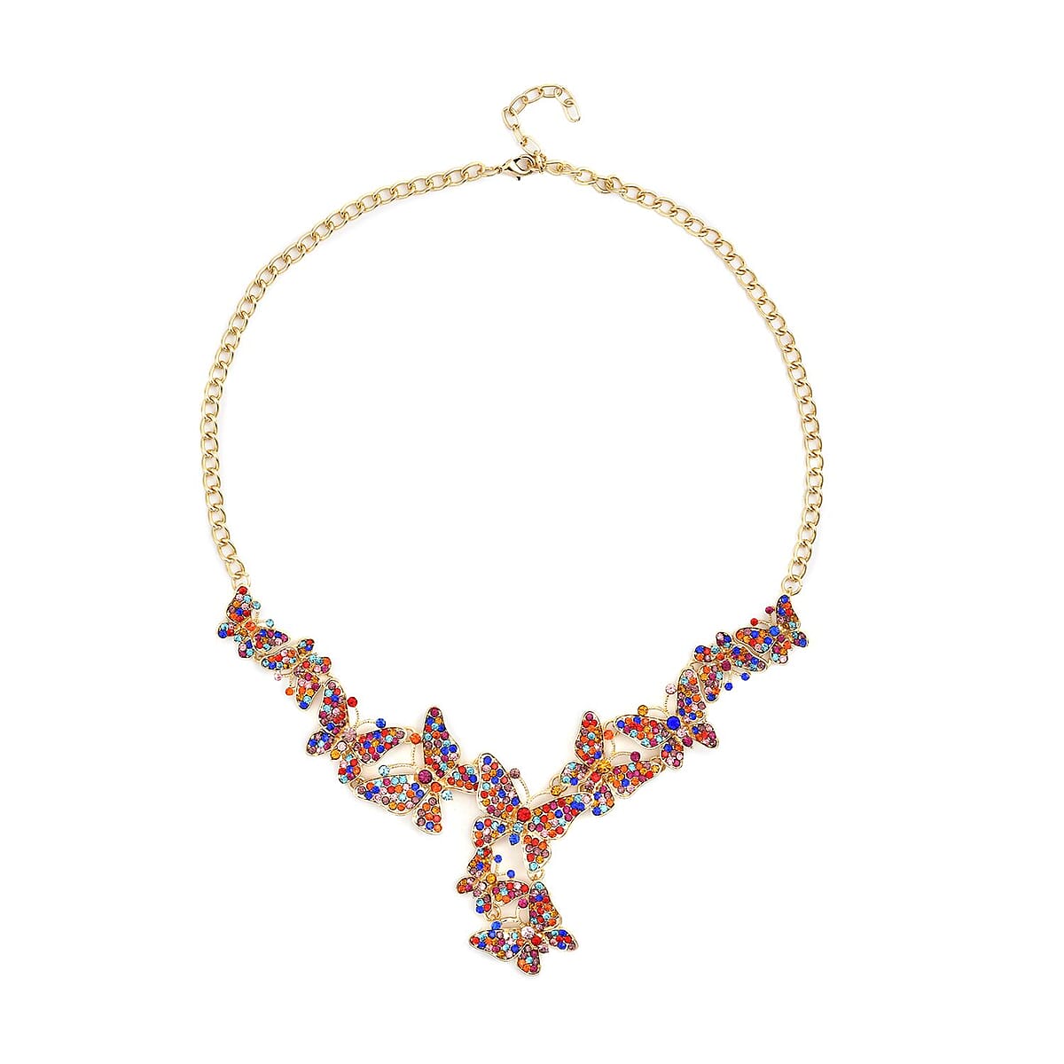 Multi Color Austrian Crystal Butterfly Necklace in Goldtone 20-22 Inches