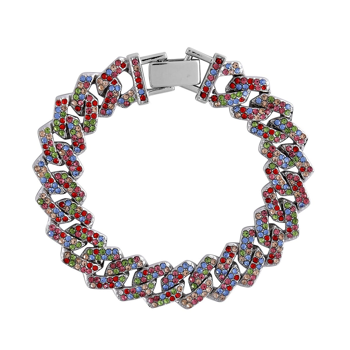 Multi Color Austrian Crystal Curb Link Bracelet in Silvertone (7.50 In)