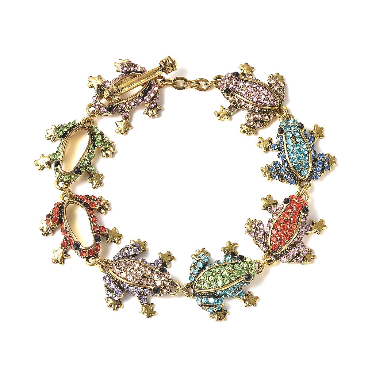 Multi Color Austrian Crystal Frog Link Bracelet in Goldtone (7.00-9In)