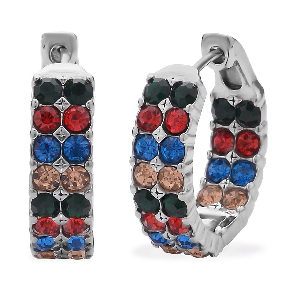 Multi Color Austrian Crystal Inside-out Hoop Earrings in Stainless Steel , Tarnish-Free, Waterproof, Sweat Proof Jewelry