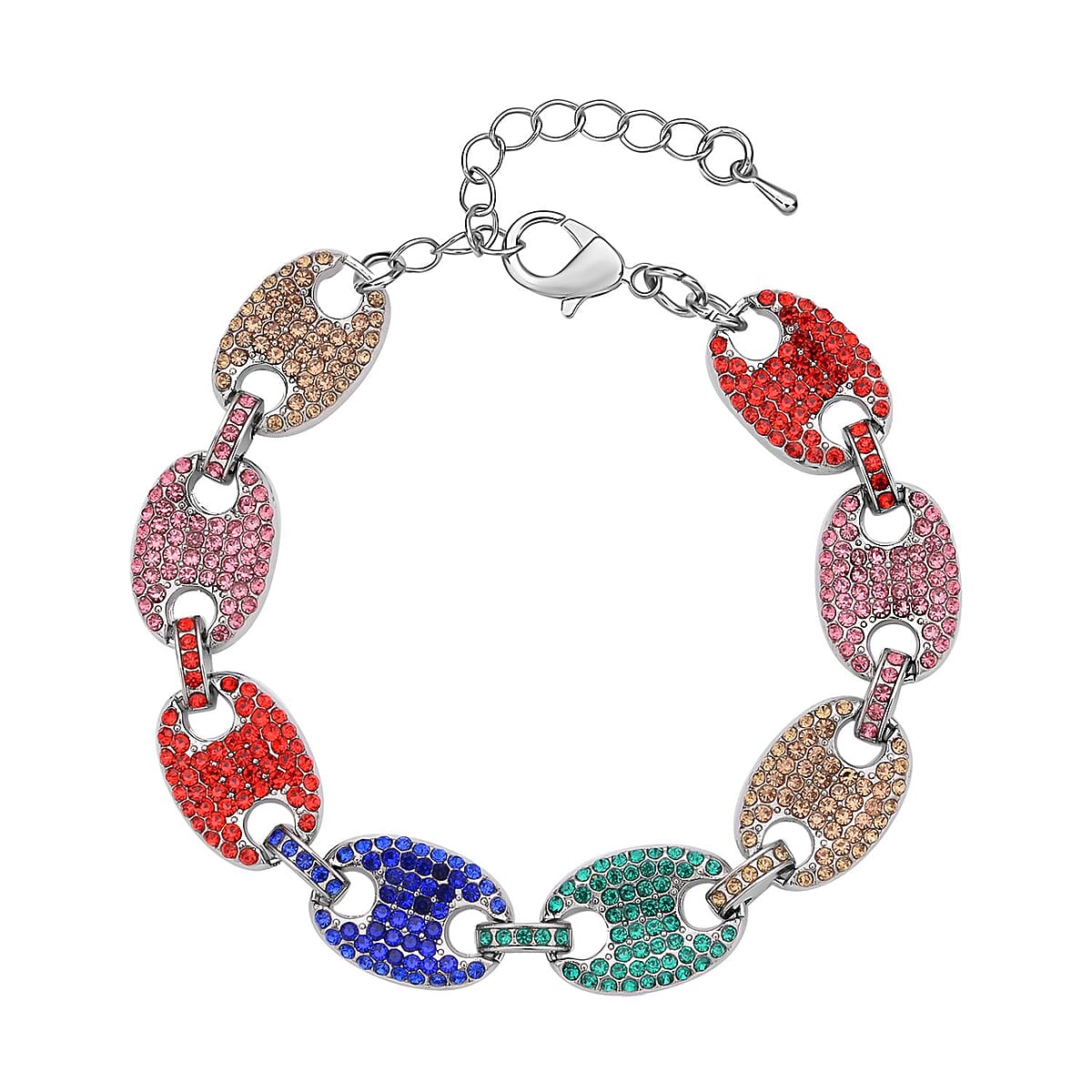 Multi Color Austrian Crystal Mariner Link Bracelet in Silvertone (7.50-9.50In)