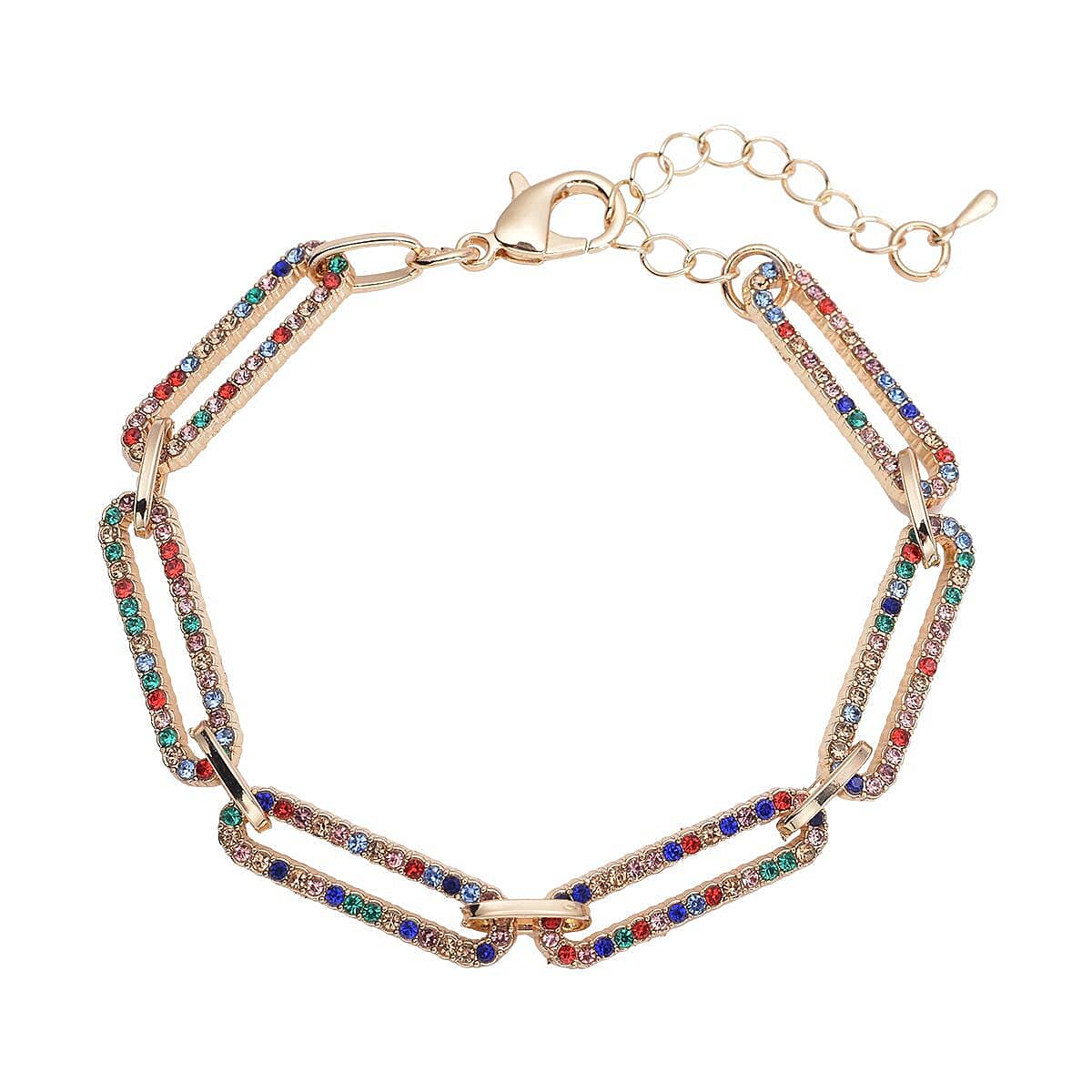 Multi Color Austrian Crystal Paper Clip Chain Bracelet in Goldtone (7.50-9.50 Inches)