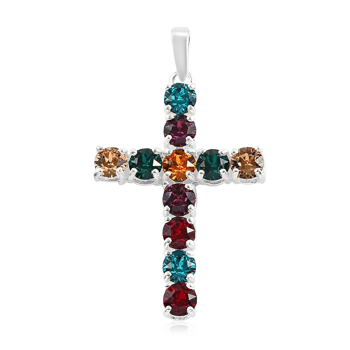 Multi Color Crystal Cross Pendant in Sterling Silver