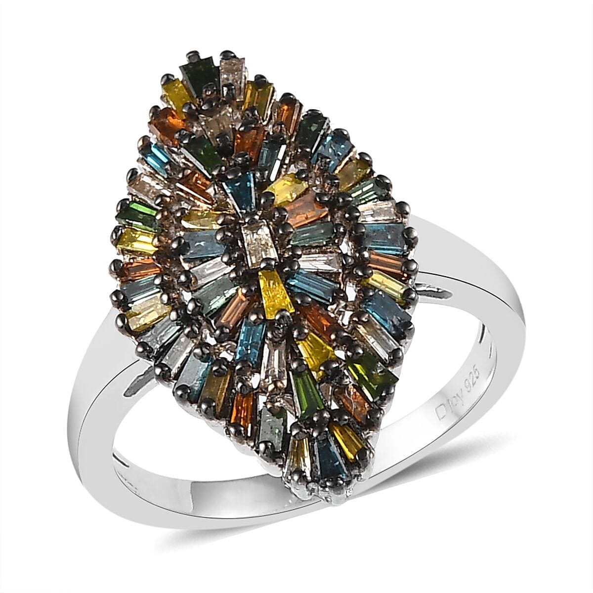 Multi Color Diamond 1.00 ctw Ring in Rhodium and Platinum Over Sterling Silver, Silver Sparkle Ring, Engagement Rings, Wedding Rings For Her (Size 9.0)