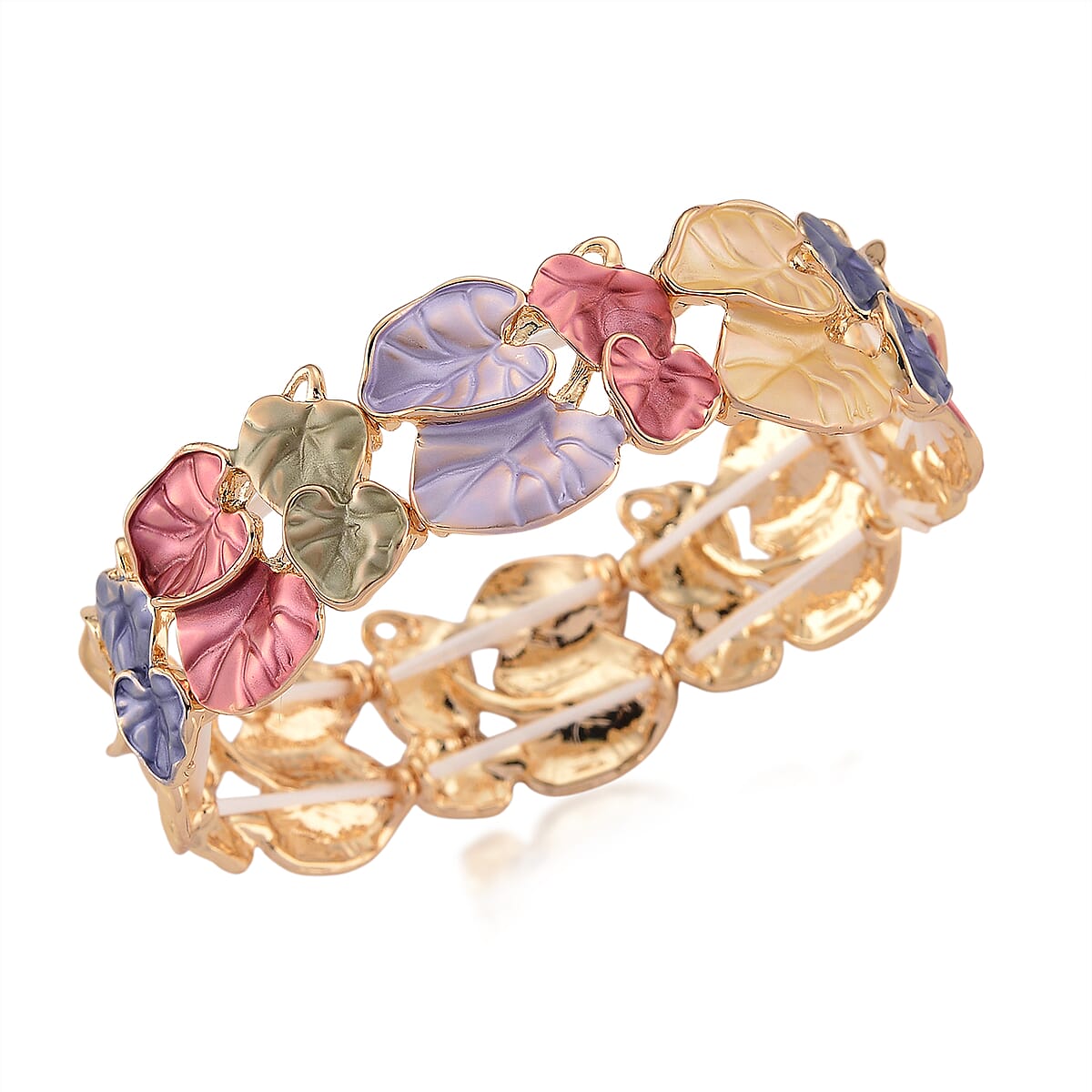 Multi Color Enameled Floral Bangle Bracelet in Goldtone (7-7.5In)