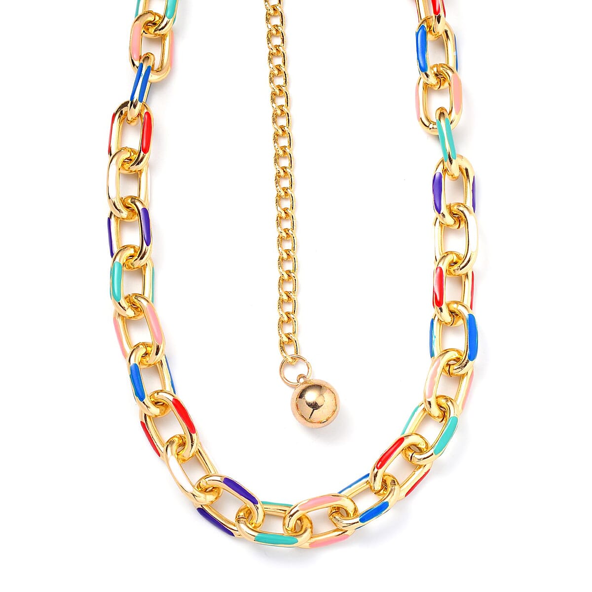 Multi Color Enameled Necklace in Goldtone 28.50-44.50 Inches