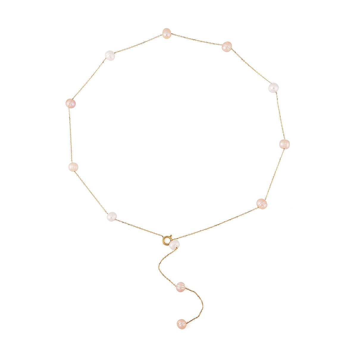 The freshwater pearl lariat necklace is an elegant lariat necklace for women. It symbolizes the bonds formed between people. Featuring freshwater pearls, this pearl necklace is coveted for its satiny luster and durability. It is crafted with stainless steel.