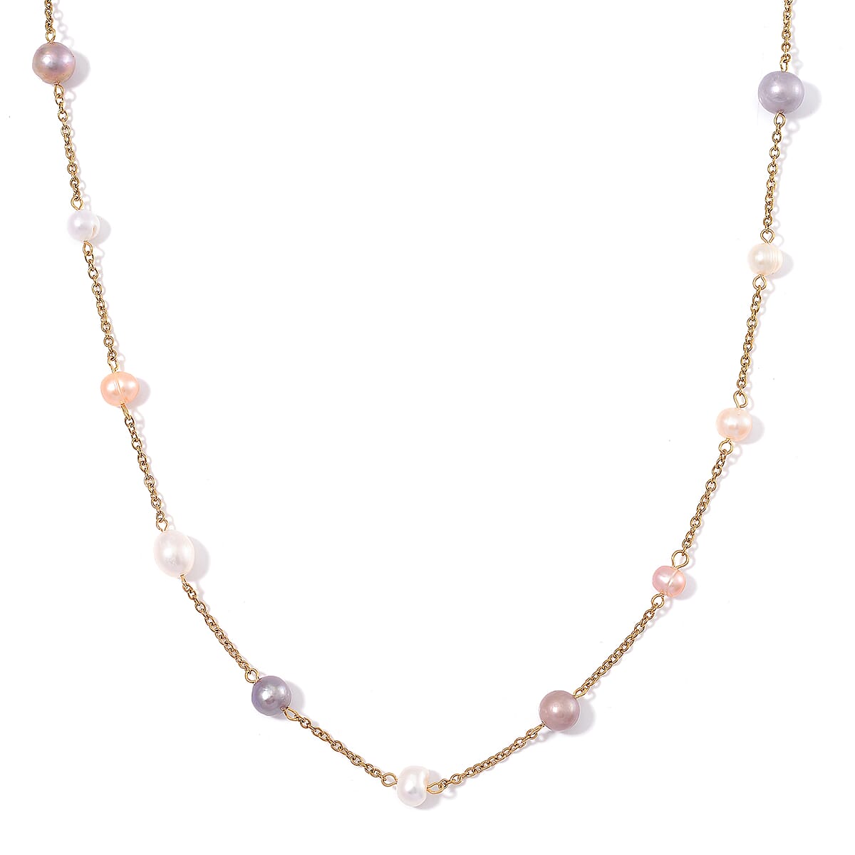 Multi Color Freshwater Pearl Necklace 36 Inches in ION Plated YG Stainless Steel