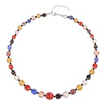 Multi Color Glass Beaded Necklace in Silvertone 20-22 Inches