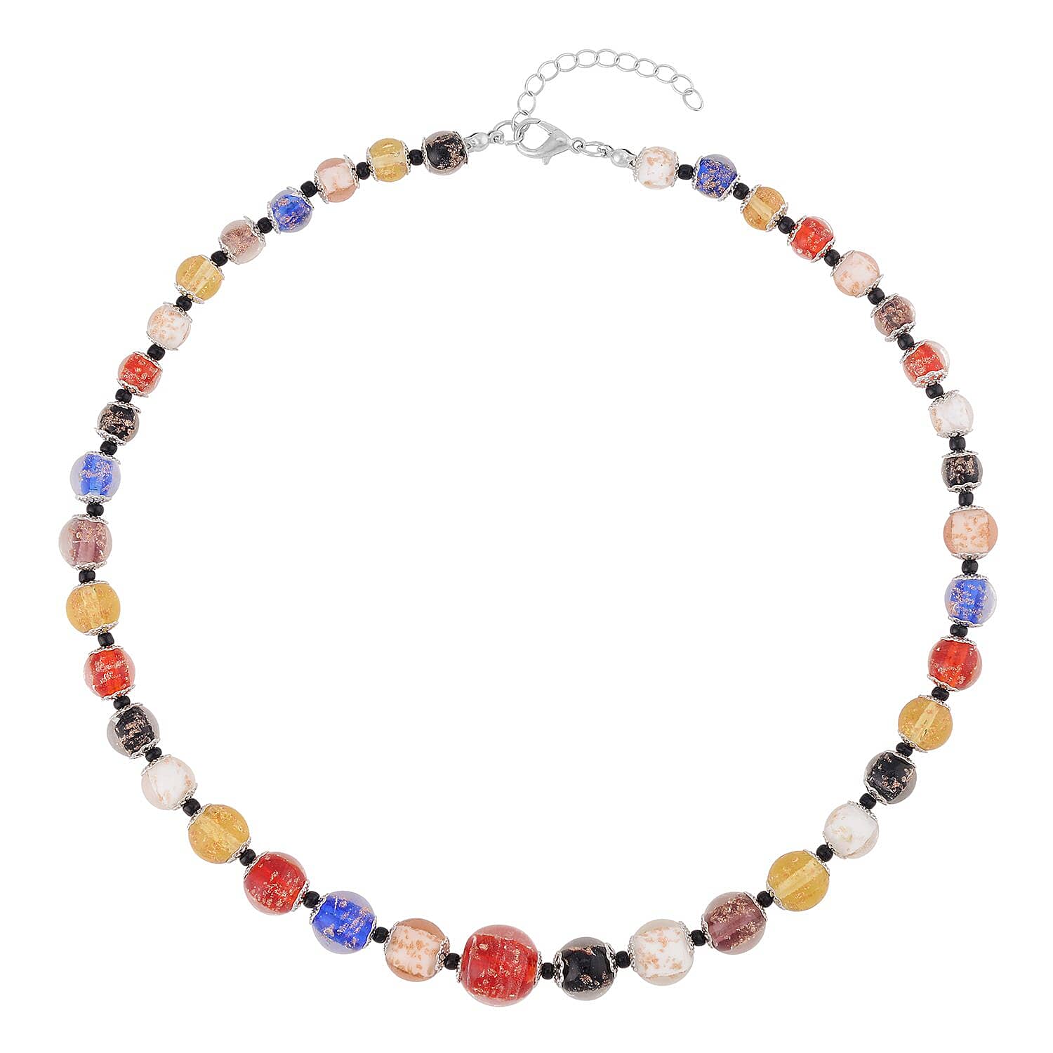 This Murano style beaded necklace combines traditional artistry with contemporary design, offering a unique accessory for any occasion. Crafted from durable metal and meticulously assembled, it embodies quality and beauty.