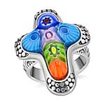 Multi Color Murano Style Cross Ring in Black Oxidized Stainless Steel (Size 7.0)