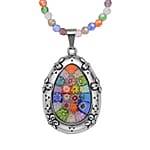 Add a splash of color to your wardrobe with this captivating multicolor Murano style pendant and a faceted beaded necklace. This masterpiece merges the timeless allure of Murano glass artistry with contemporary design, creating an irresistible piece of jewelry. Encapsulating a meticulously crafted floral design within its glass center, this pendant isn't merely an accessory; it's a statement of sophistication and style.