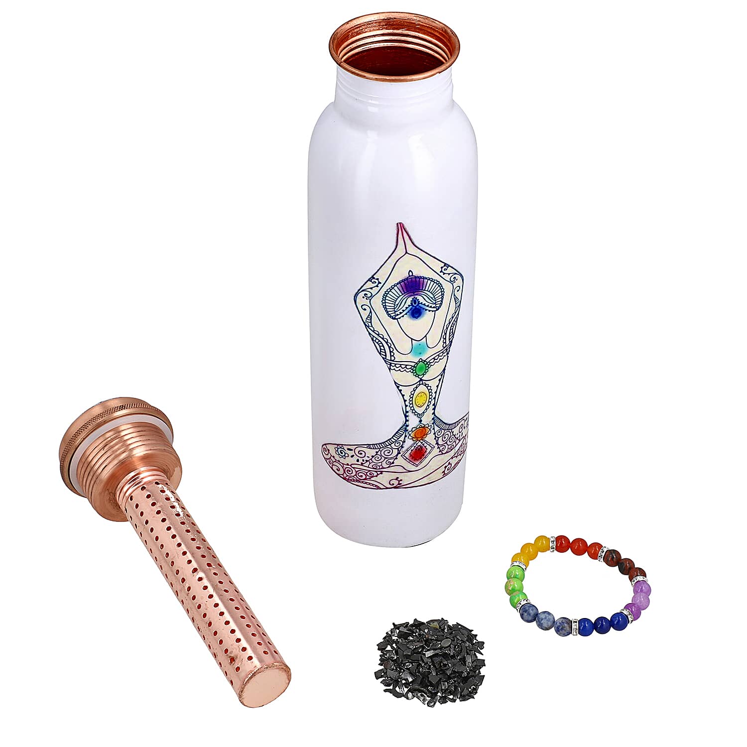 Multi Color Printed Copper Infused Bottle 32oz with Shungite Infuser with FREE Seven Chakra Beaded Stretch Bracelet