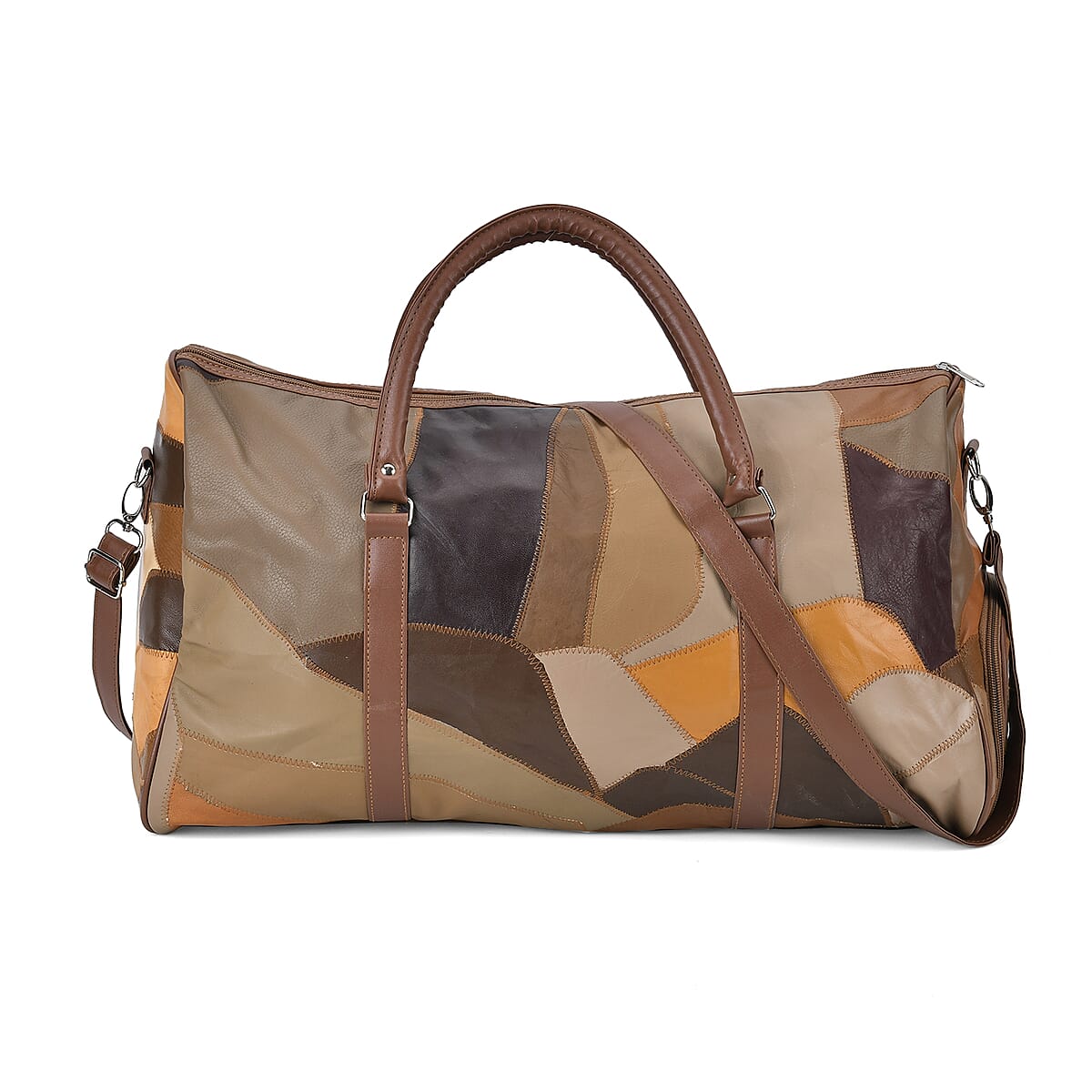 Multi Color Sheep Leather Travel Bag with Handle Drop 8.7 Inches and Long Shoulder Strap 54.7 Inches