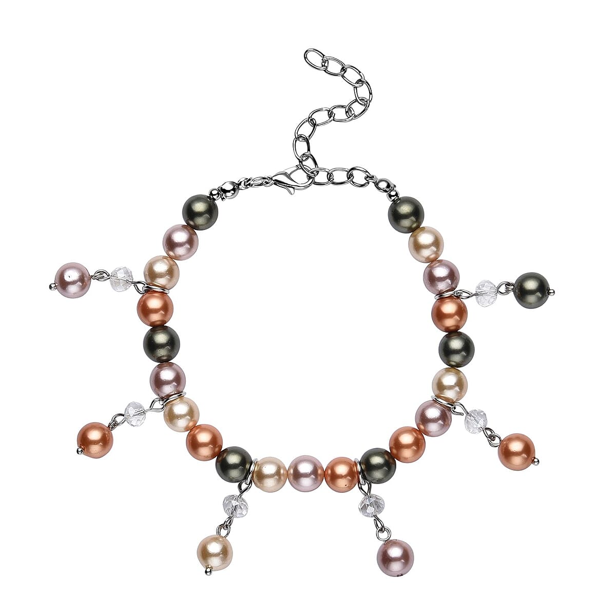 Multi Color Shell Pearl and White Glass Beaded Anklet or Bracelet 8-11 Inches in Silvertone