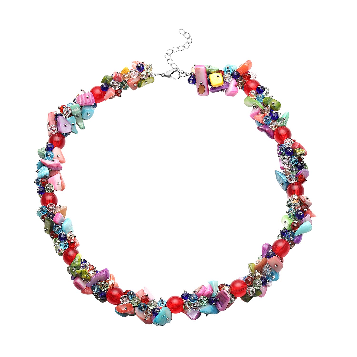 Multi Color Shell Seed Bead Necklace, Silvertone Necklace, Multi Strand Statement Necklace For Women, Birthday Gifts For Women, 20-23 Inch Necklace