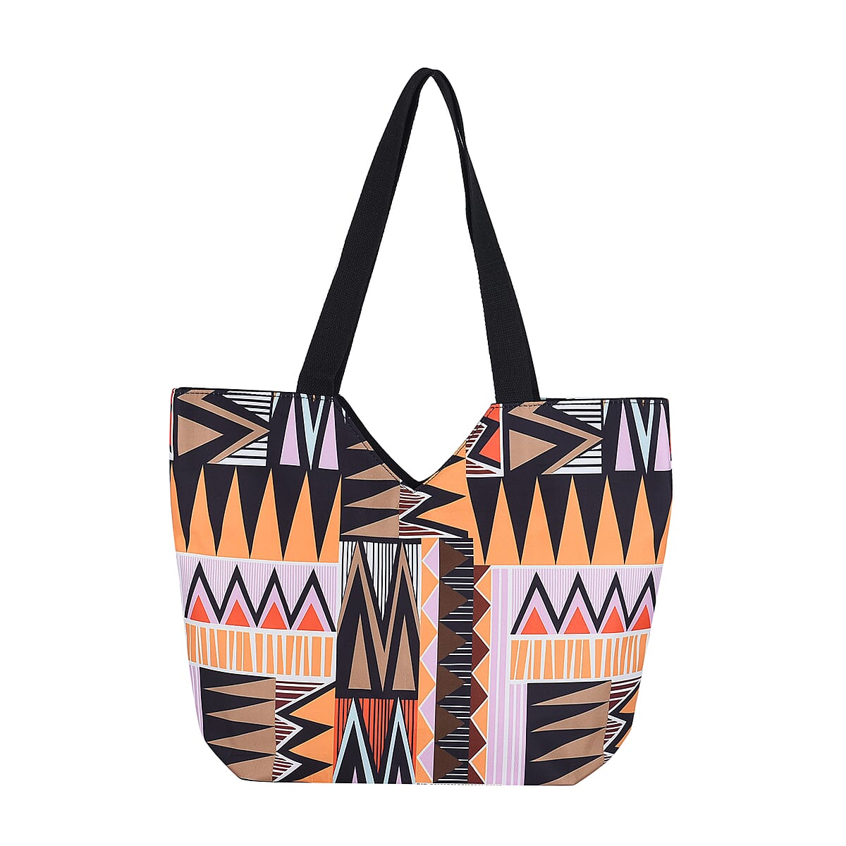 Multi Color Triangular Geometric Pattern Tote Bag with Handle Drop