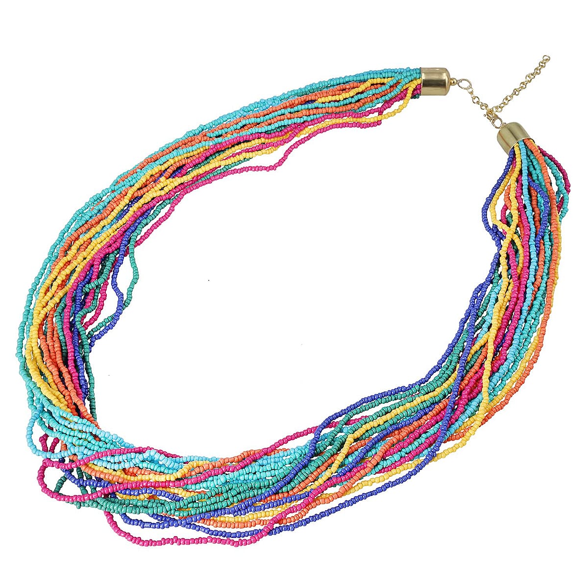 Multi Color Twisted Multi Layered Beaded Necklace in Goldtone 20-22 Inches