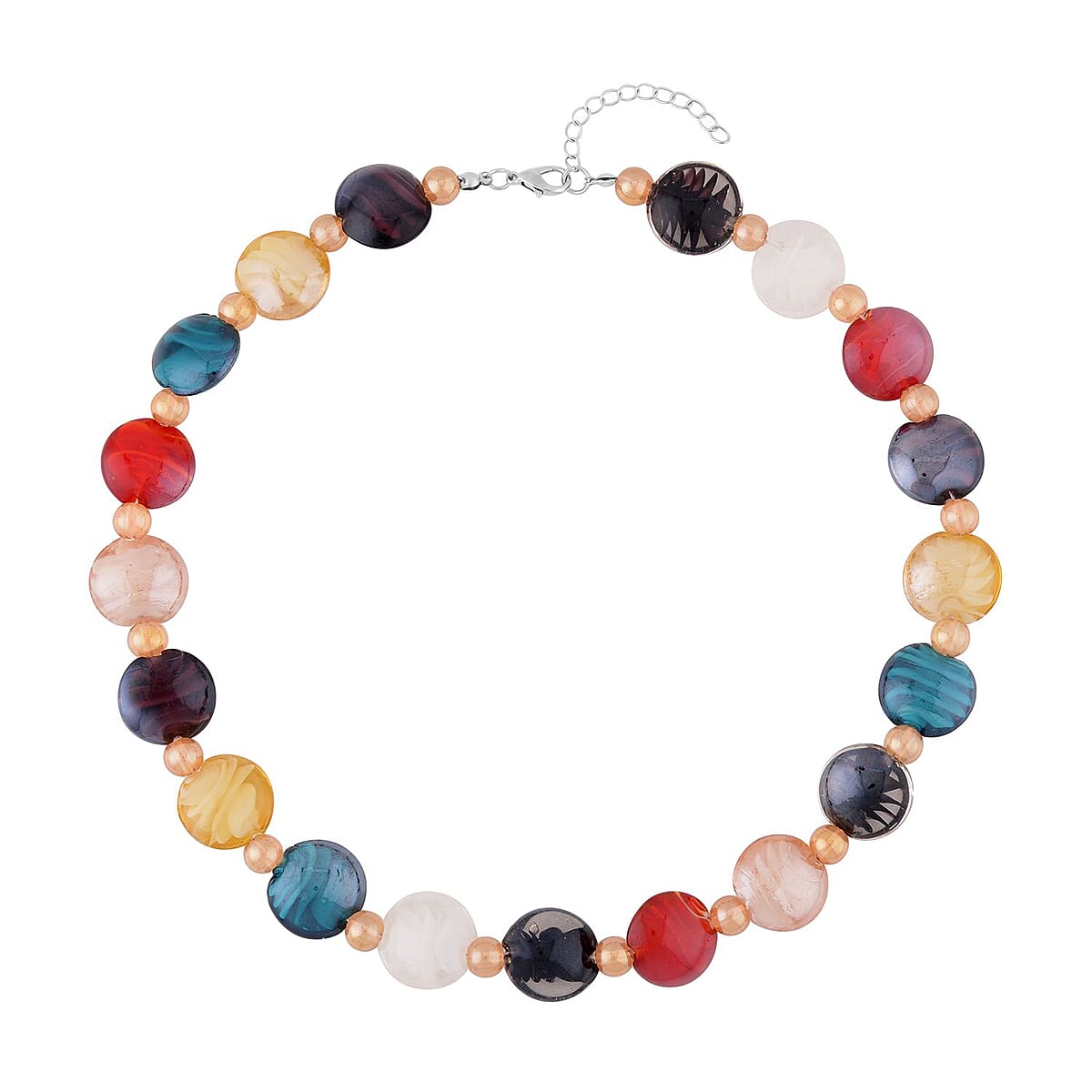 Multi Color with Champagne Glass Beaded Necklace 20-22 Inches in Silvertone