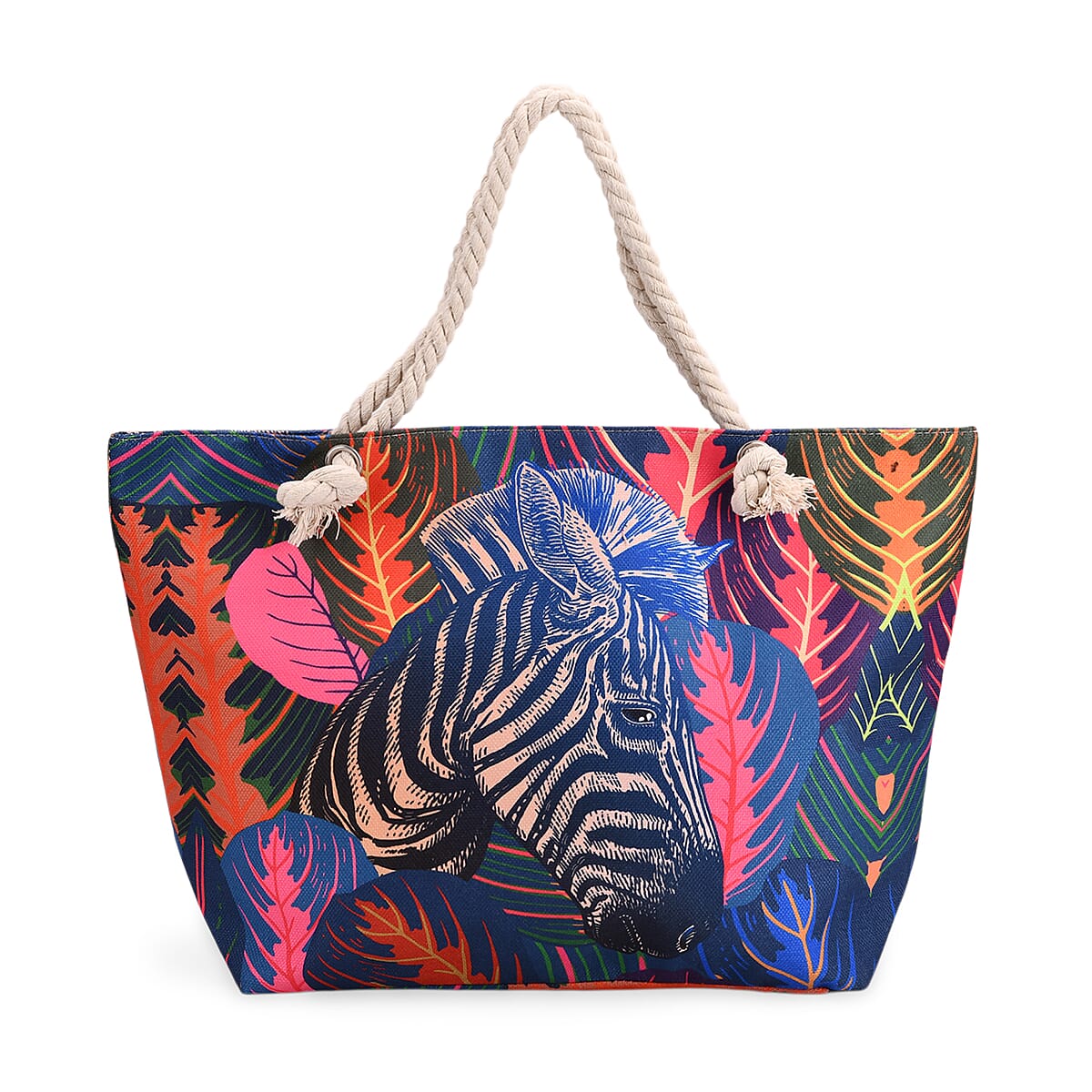 Multi Color Zebra Head and Leaves Print Pattern Large Size Tote Bag