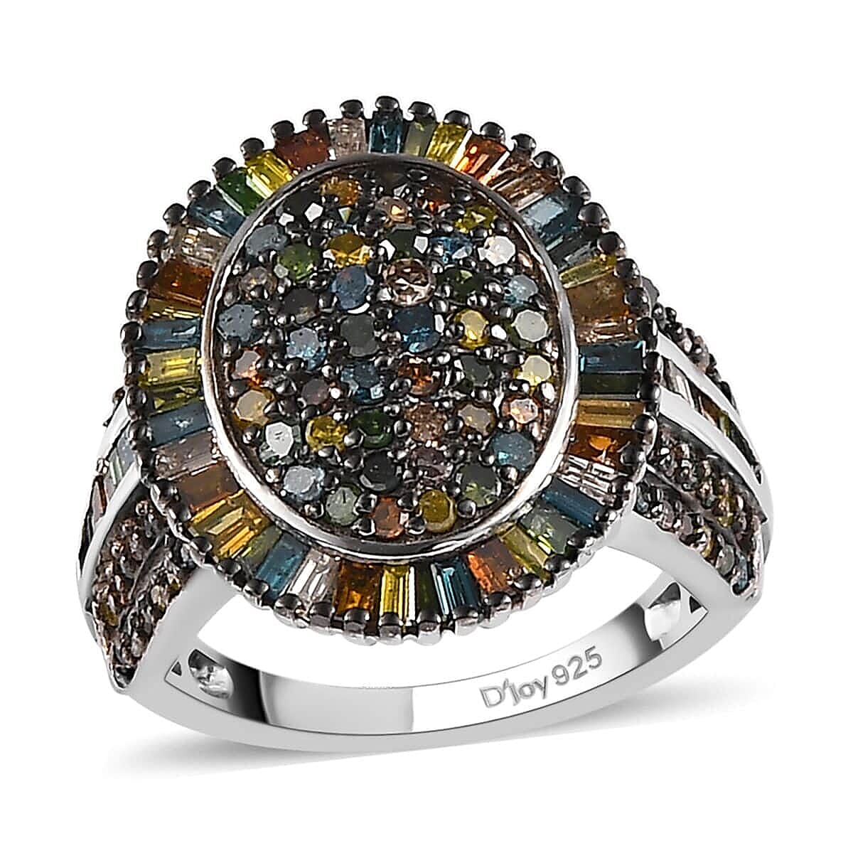Introducing this stunning silver diamond cocktail ring. This piece is crafted with the finest attention to detail, featuring a unique combination of fancy-colored diamonds set in a striking sterling silver band. The colorful diamonds add a pop of brilliance, while the white diamonds provide a classic elegance. The ring is perfect for any special occasion, such as a cocktail party or a formal event.