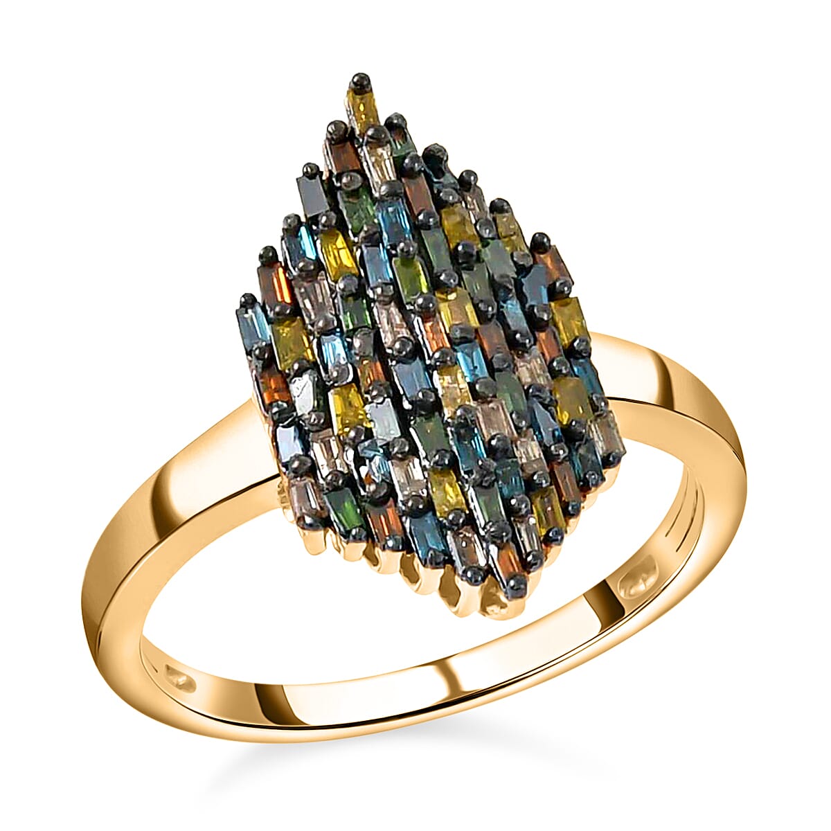 Multi Diamond Ring, Diamond Elongated Ring, Diamond Cluster Ring, Black Rhodium & Vermeil YG Over Sterling Silver Ring, Diamond Ring For Her 0.75 ctw