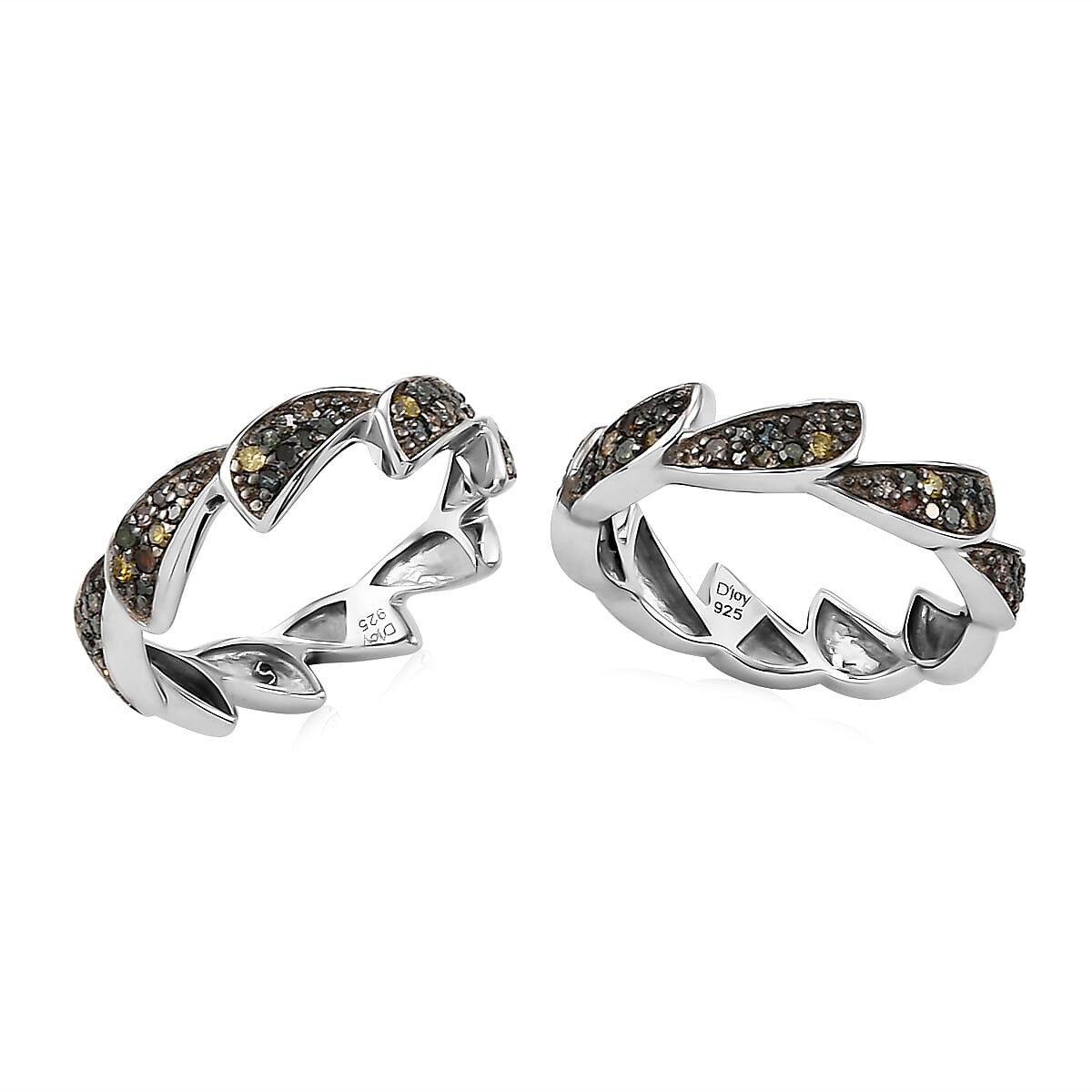 Multi Diamond Set of 2 Stackable Band Ring in Rhodium & Platinum Over Sterling Silver (Size 7.0) 0.50 ctw