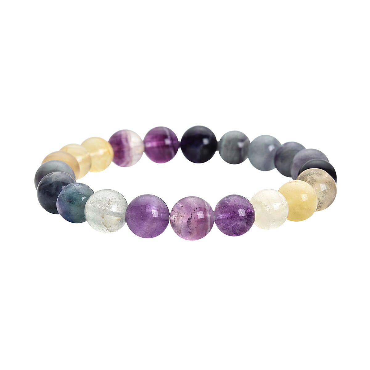 Stretchable styling and endless color make this multi fluorite beaded stretch bracelet a must-have for all women. Features multi-colored round-shaped beads of fluorite, this multi fluorite beaded stretch bracelet is created in durable and stretchable string. This is perfect for wearing alone or stacking with other bracelets. It is so easy to slip on your wrist any time that you would not need any other accessory to make your look special