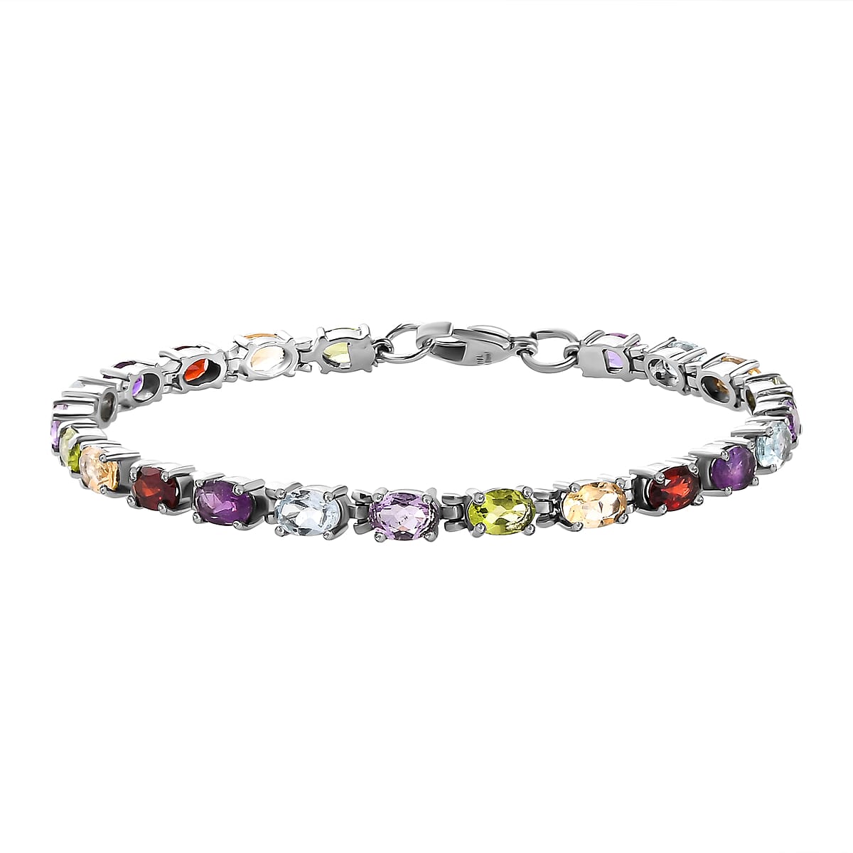 Multi Gemstone 10.90 ctw Bracelet in Stainless Steel (7.50 In)