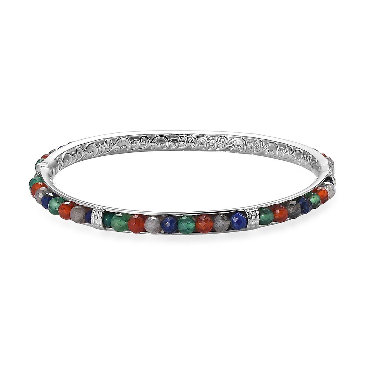 Multi Gemstone 18.00 ctw Bangle Bracelet in Stainless Steel (8.00 In)