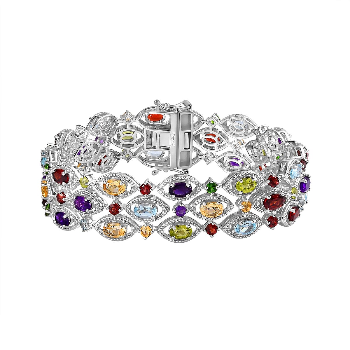 Multi Gemstone 3 Row Bracelet in Platinum Over Sterling Silver (8.00 In) 23.30 ctw