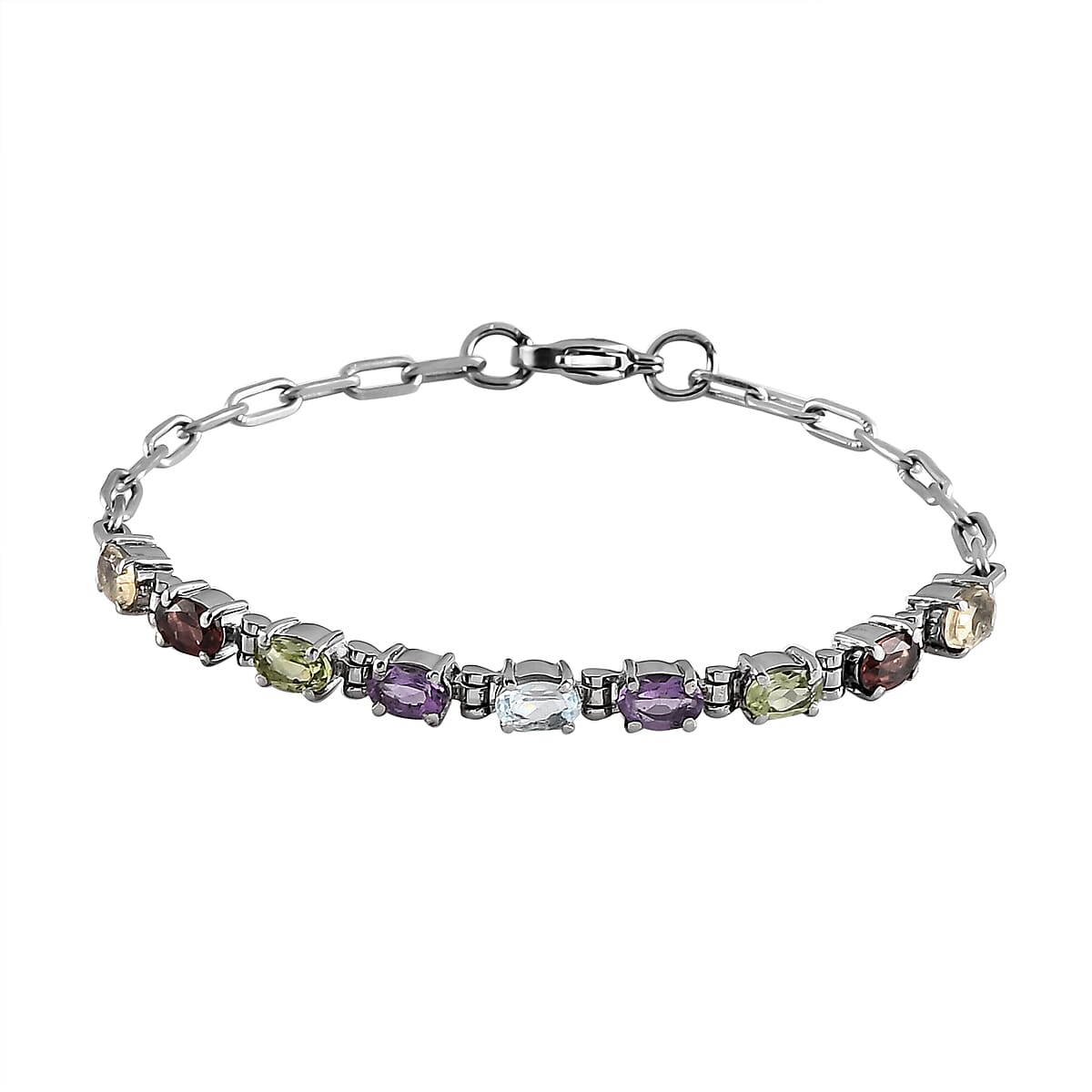 Multi Gemstone 4.20 ctw Bracelet in Platinum Bond and Stainless Steel (7.25 In)
