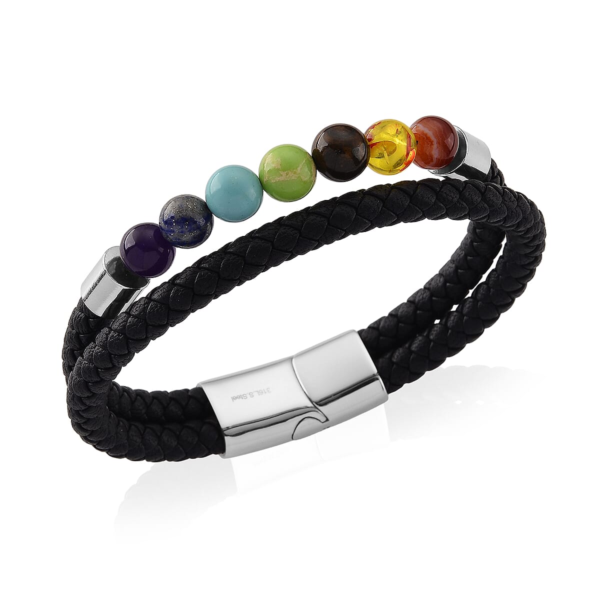 Multi Gemstone 45.00 ctw Beaded Bracelet in Stainless Steel (8.50 In)