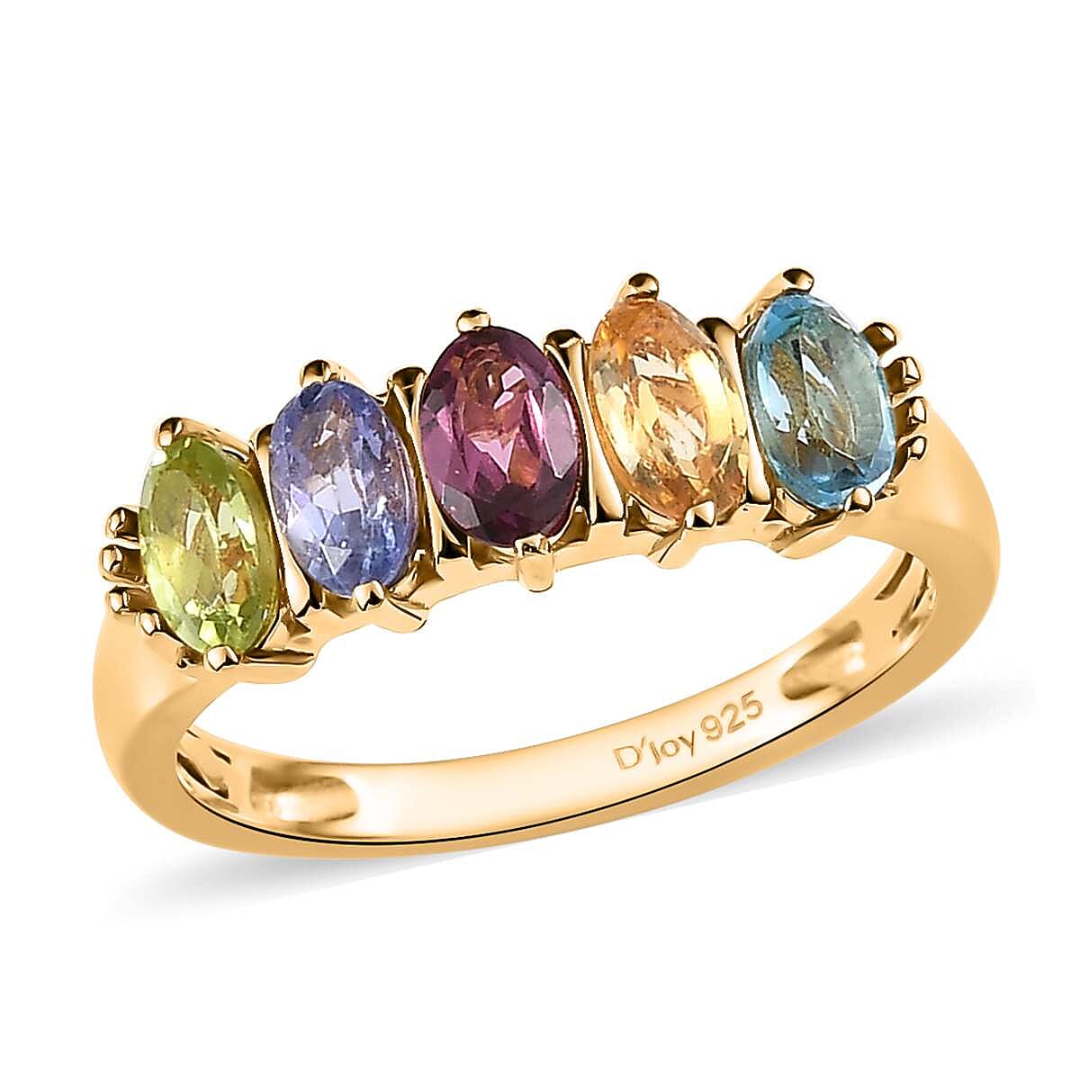 Multi Gemstone 5 Stone Band Ring in Vermeil Yellow Gold Over Sterling Silver (Size 7.0) 1.25 ctw