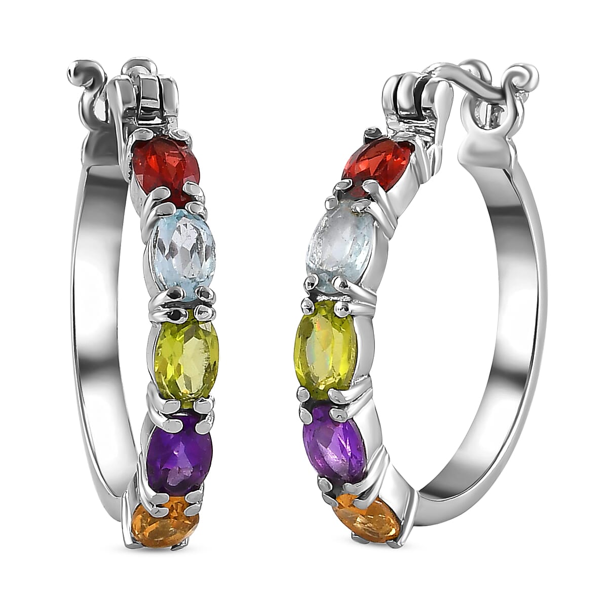 Multi Gemstone 5.10 ctw Hoop Earrings in Stainless Steel
