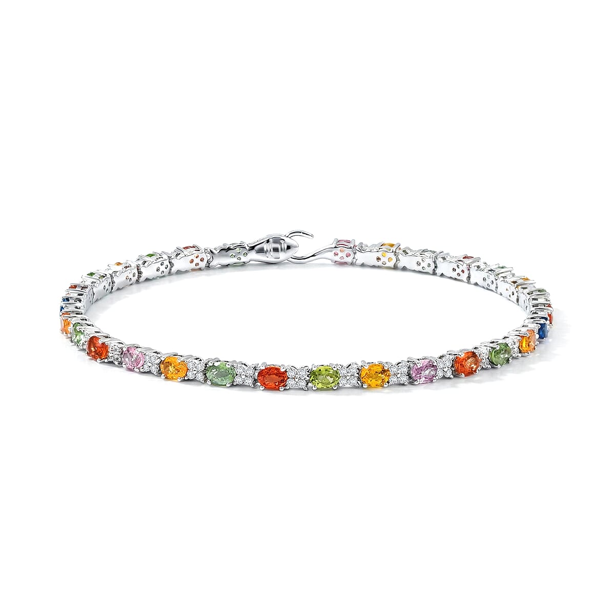Multi Gemstone 8.20 ctw Bracelet in Rhodium Over Sterling Silver (8.00 In)