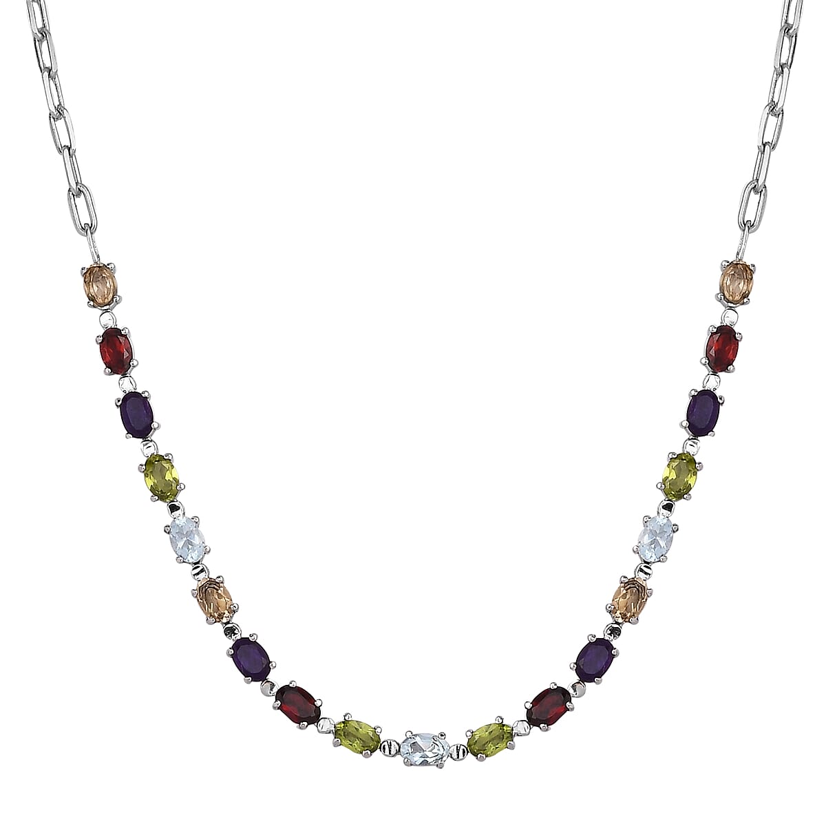 Multi Gemstone 9.50 ctw Necklace (18 Inches) in Platinum Bond and Stainless Steel