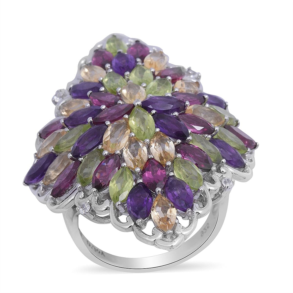 Multi Gemstone and White Zircon Sparkle Ring in Platinum Over Sterling Silver (Size 8.0) 13.00 ctw