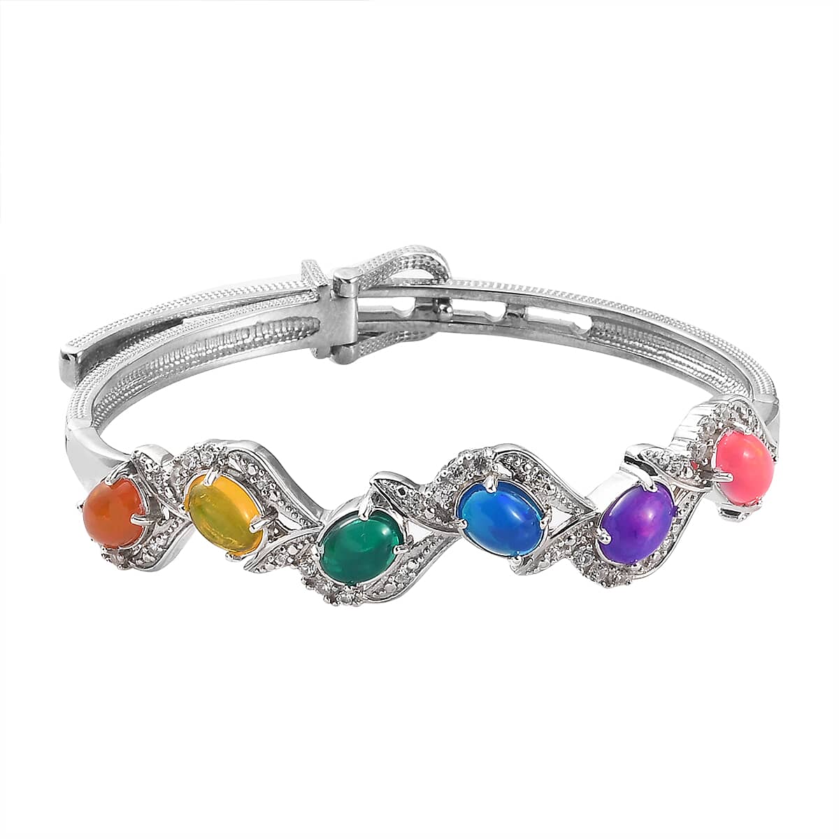 Multi Gemstone Bangle Bracelet in Platinum Over Sterling Silver (7.25 In) 5.90 ctw