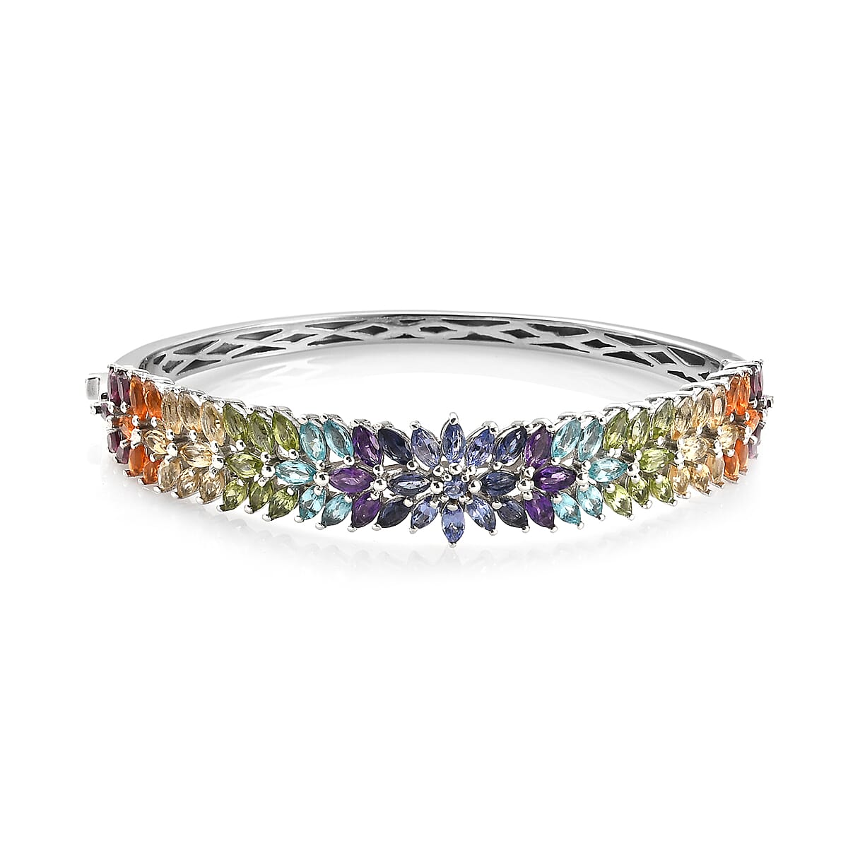 Multi Gemstone Bangle Bracelet in Platinum Over Sterling Silver (8 In) (26.85 g) 12.00 ctw