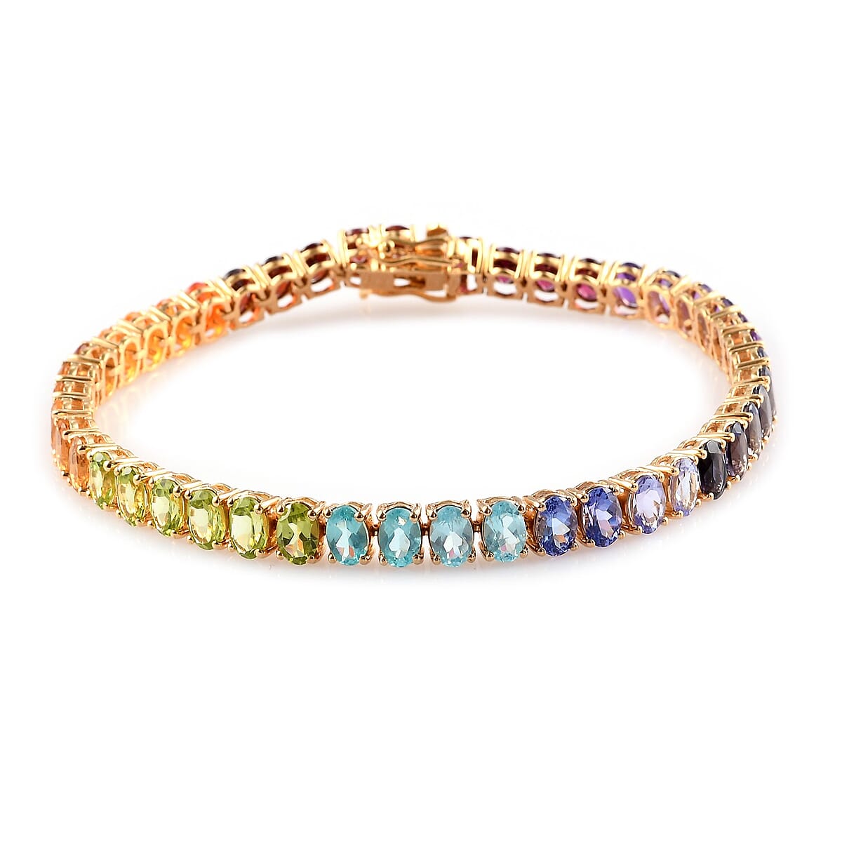 Multi Gemstone Bracelet in 14K Yellow Gold Over Sterling Silver (7.50 In) 17 Grams 21.30 ctw
