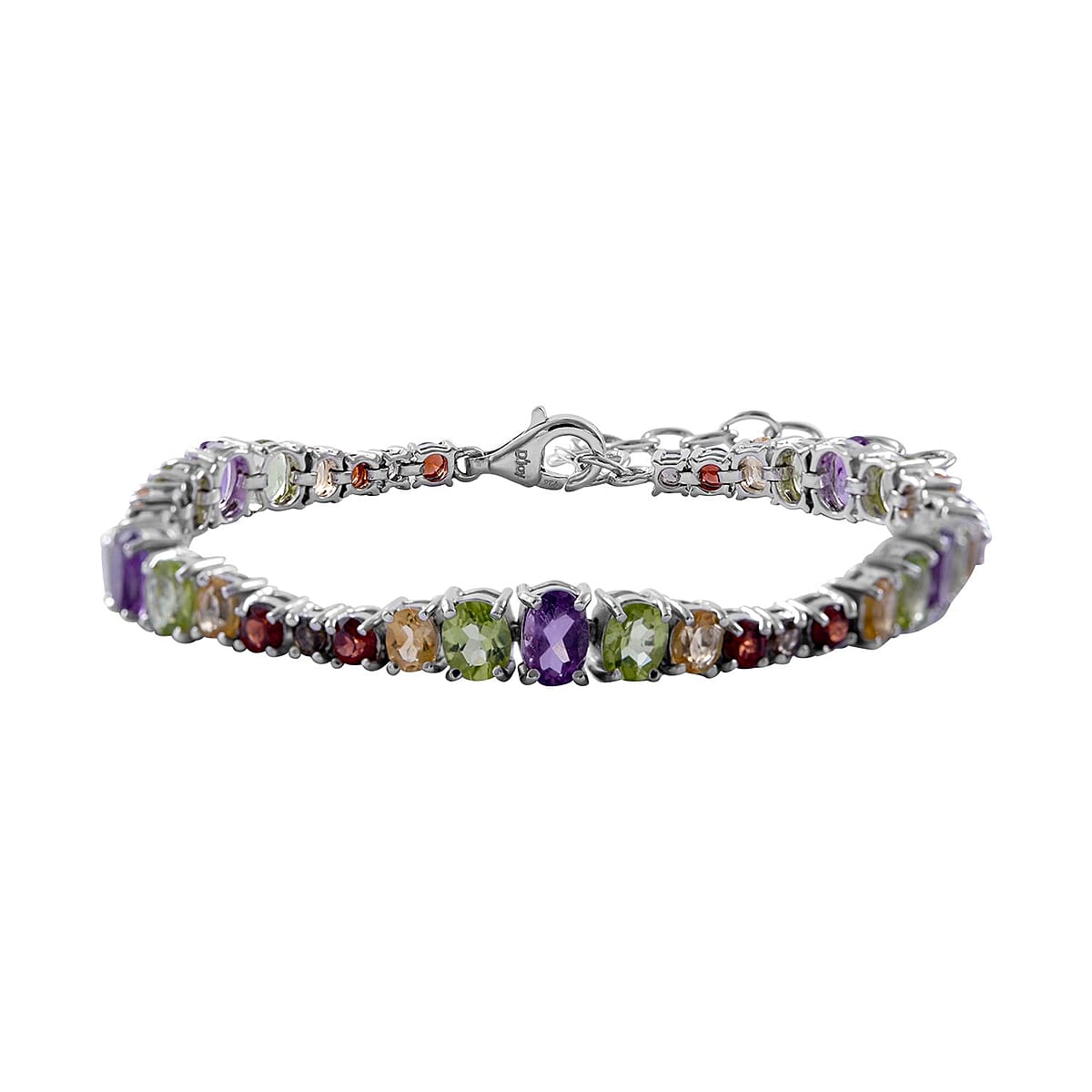 Multi Gemstone Bracelet in Platinum Over Sterling Silver (6.50-8.50In) 9.90 ctw