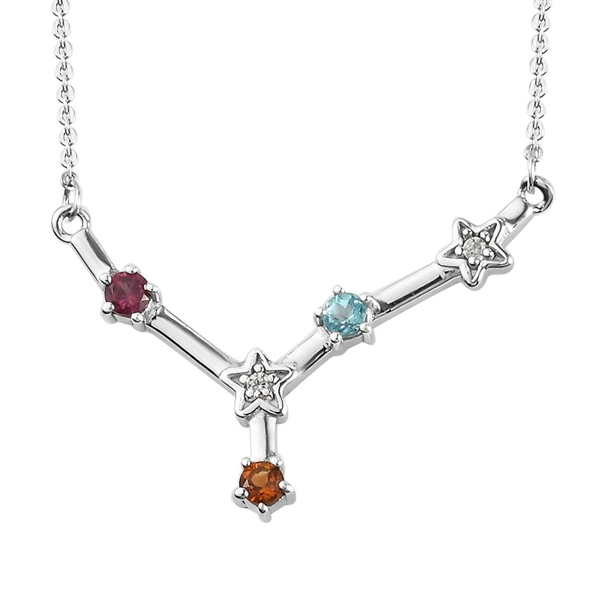 Multi Gemstone Cancer Constellation Stars Necklace 20 Inches in Platinum Over Sterling Silver 0.35 ctw