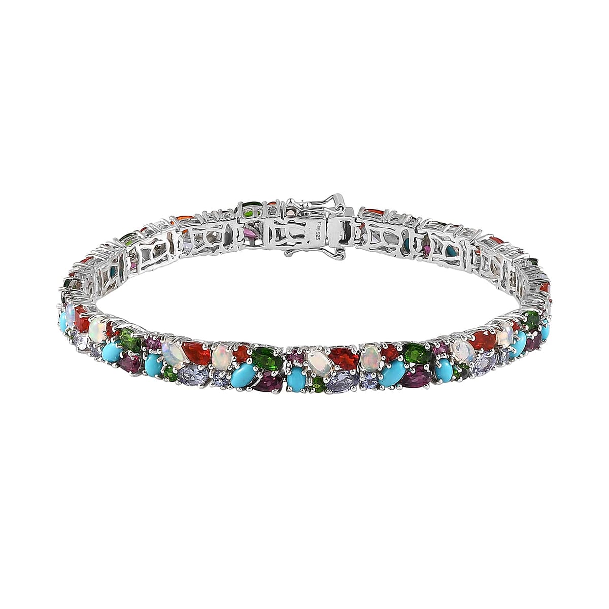 Multi Gemstone Cluster Bracelet in Platinum Over Sterling Silver (8.00 In) 15.60 ctw