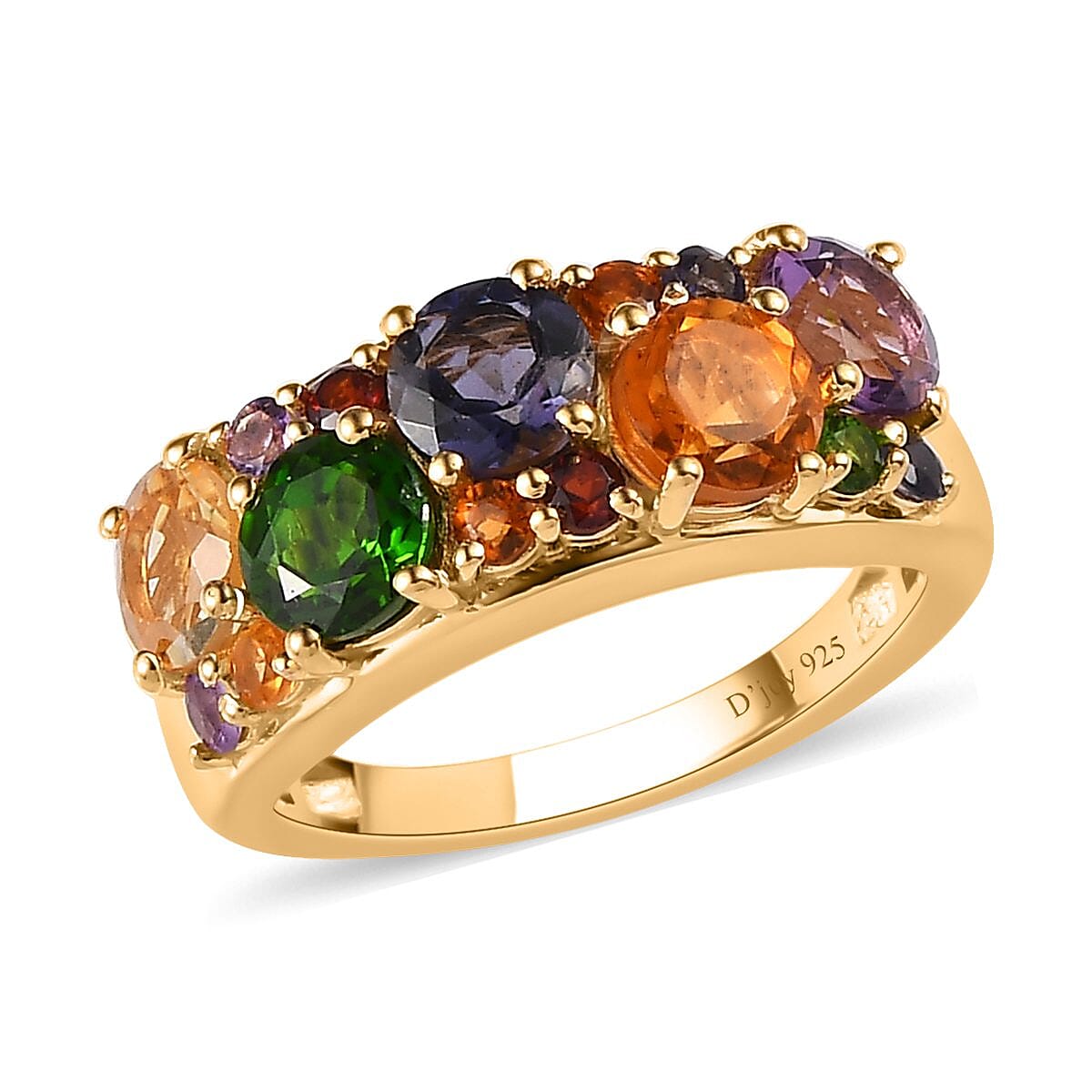 Unleash your inner radiance with our captivating multi-gemstone cluster ring in vermeil yellow gold over sterling silver! Crafted to perfection, this exquisite piece effortlessly blends sophistication with a touch of playful charm. Immerse yourself in a kaleidoscope of color as the vivid gemstones and gleaming gold transport you to a world of glamour and allure. Slip it onto your finger and let the warm embrace of vermeil yellow gold elevate your style, promising to be the perfect addition to your collection. Seize the moment and let this stunning ring be the highlight of your ensemble, making every occasion a celebration of your unique style.