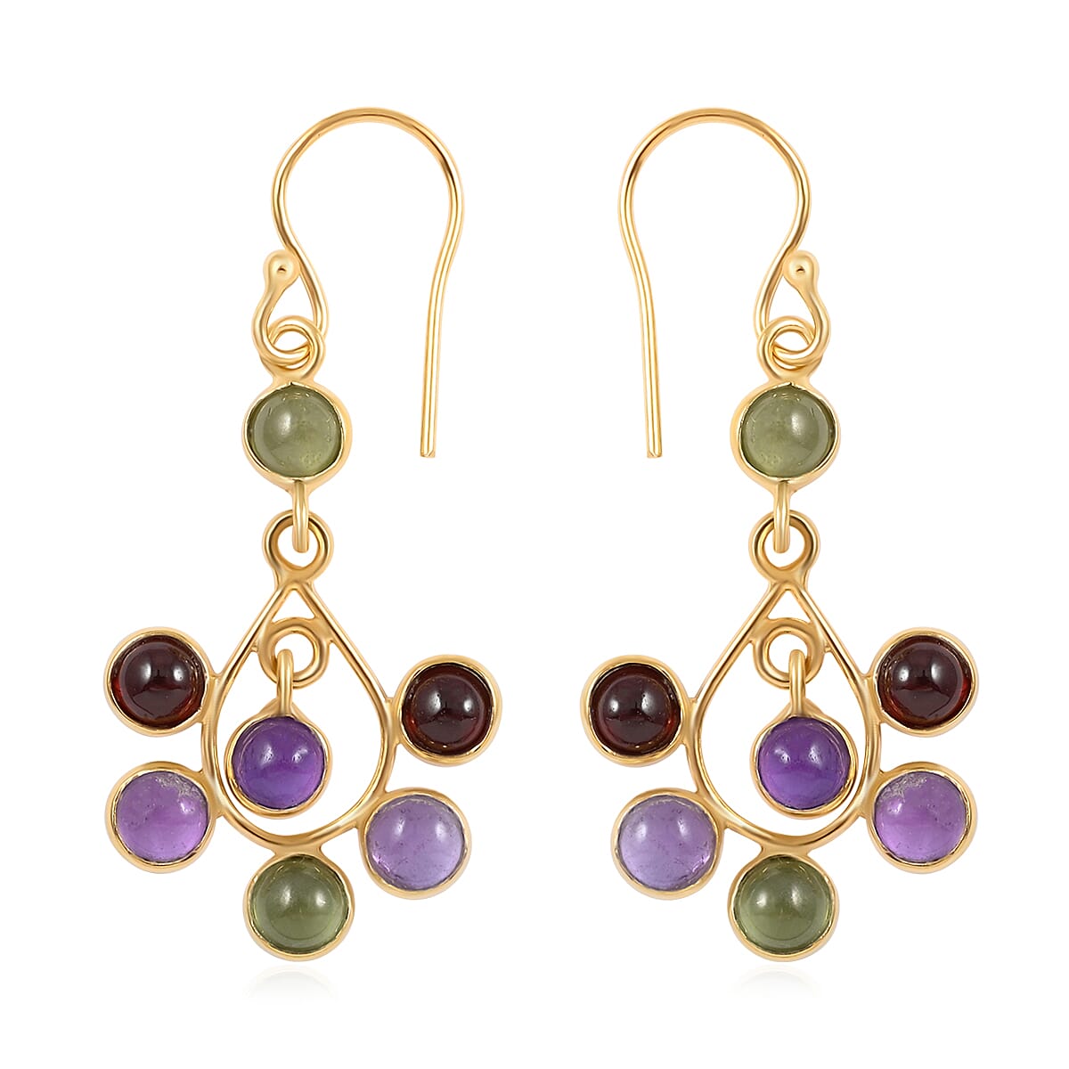 Multi Gemstone Dangle Earrings in 14K YG Over Sterling Silver 3.40 ctw