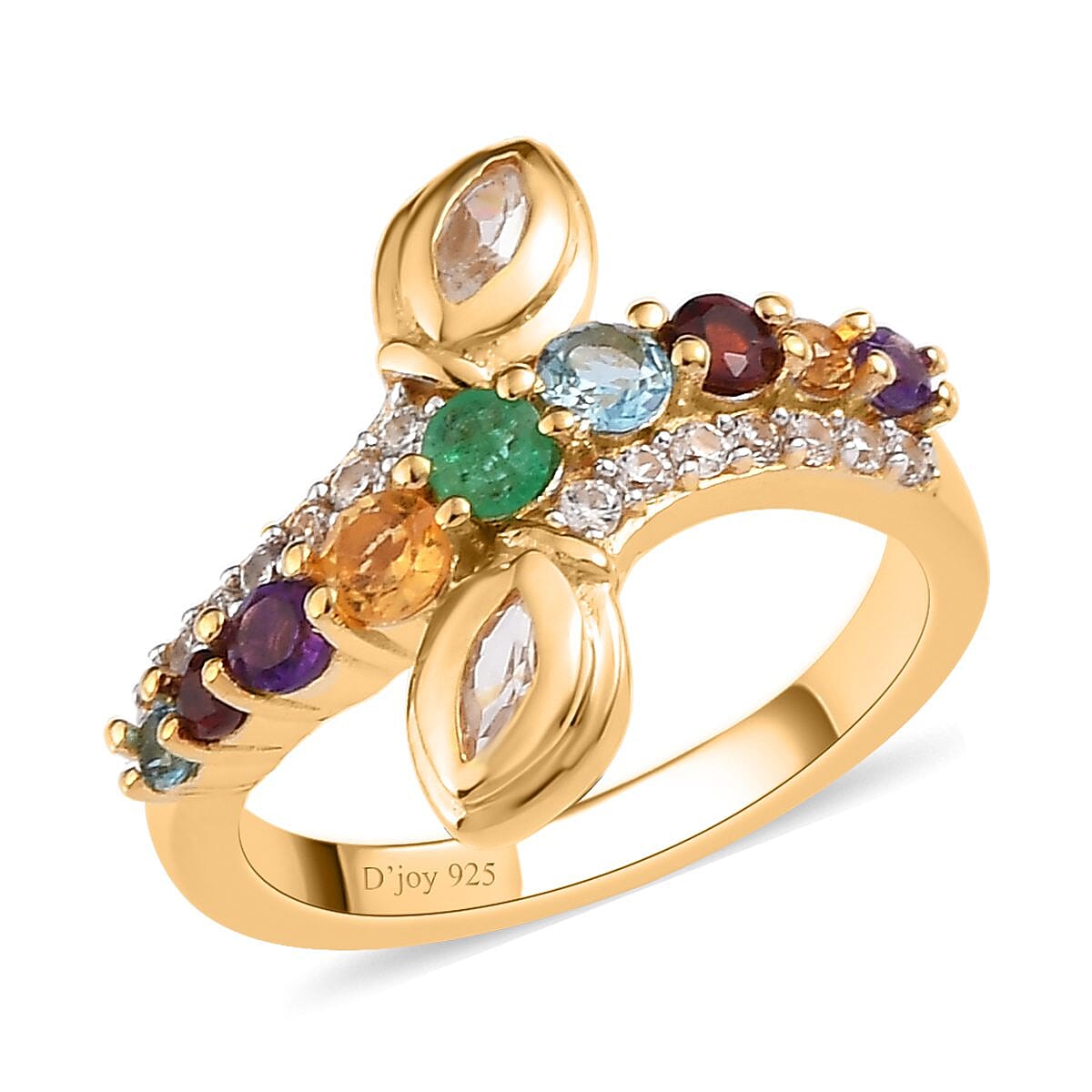 Multi Gemstone Eternal Love Bypass Snake Ring in Vermeil Yellow Gold Over Sterling Silver (Size 7.0) 0.90 ctw