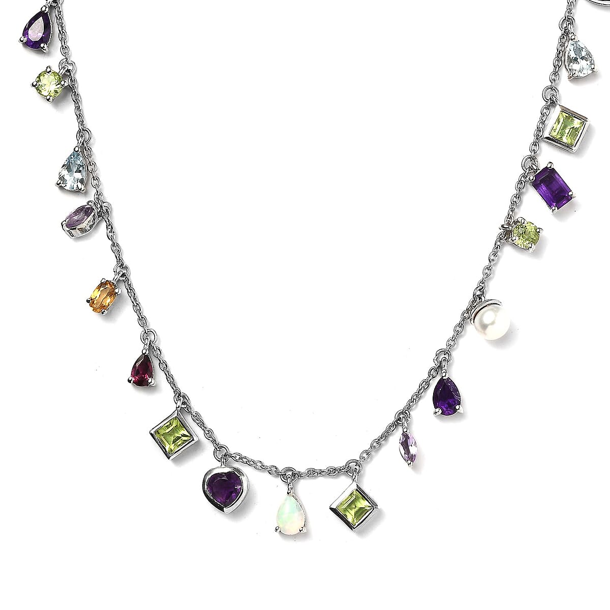 Multi Gemstone Mixed Shape and Gemstones Station Necklace 18-20 Inches in Platinum Over Sterling Silver 11.35 ctw