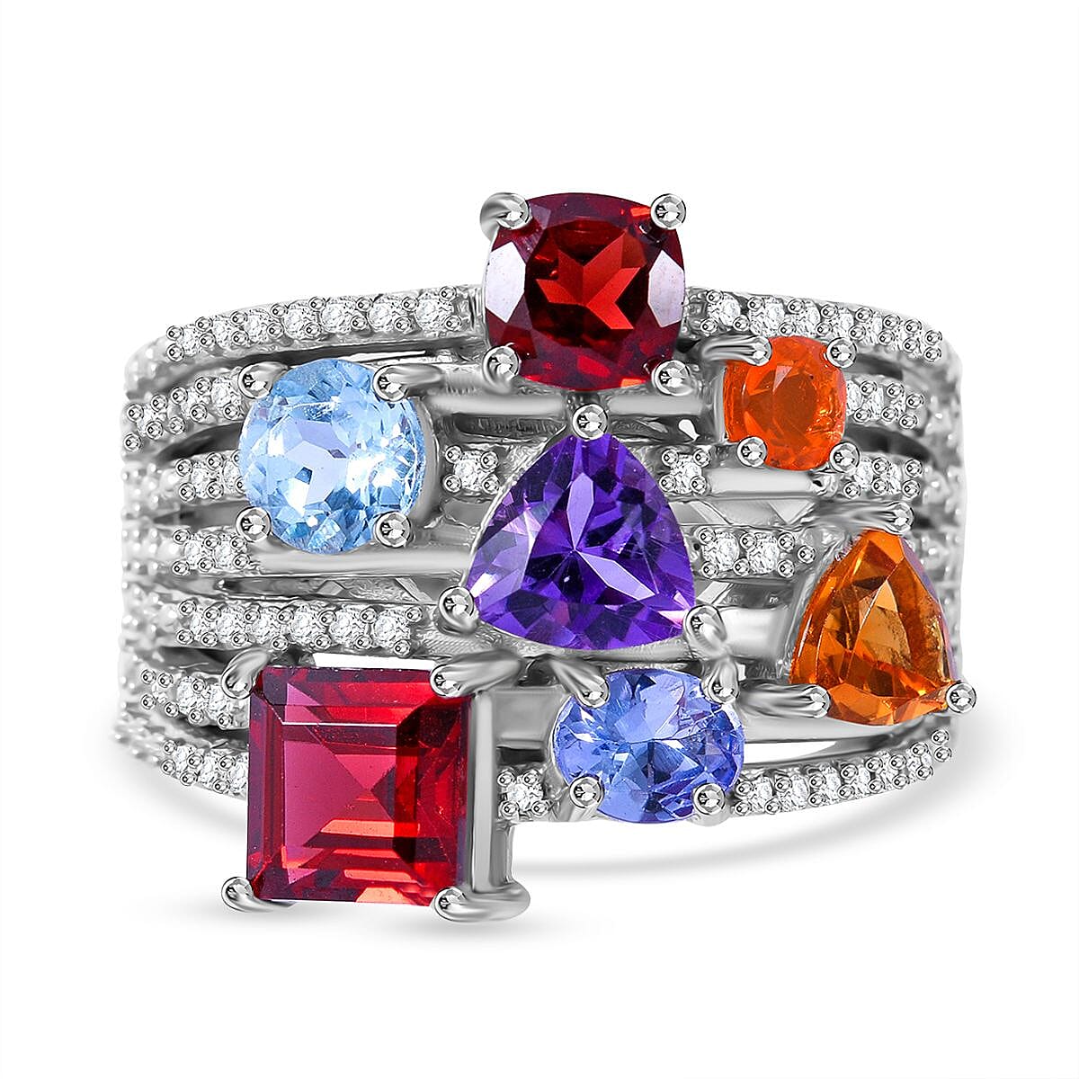 Multi Gemstone Multi Shank Ring in Platinum Over Sterling Silver (Size 6.0) 4.25 ctw